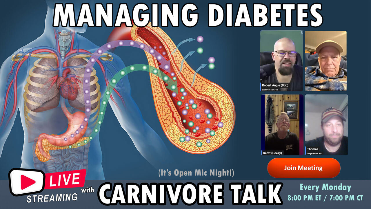 Can the carnivore diet help manage — or even reverse — type 2 diabetes? 🥩⚡ In tonight's discussion, we dive deep into how eating only animal foods (meat, eggs, butter, and more) can dramatically stabilize blood sugar, reduce insulin needs, and improve A1C levels for many people with diabetes. Discover the science behind zero-carb eating for insulin resistance. Whether you're dealing with type 2 diabetes, prediabetes, or just want better metabolic health, this could be a game-changer.