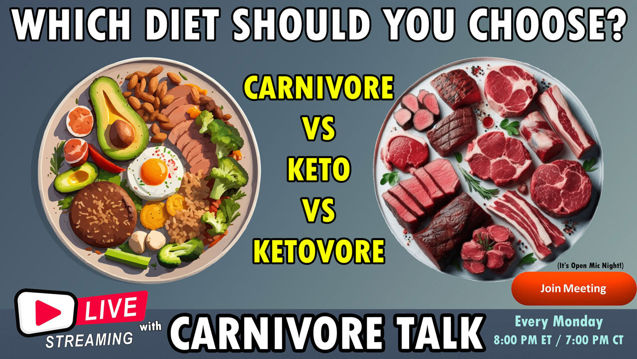 Carnivore-centric diets that exist along the Proper Human Diet spectrum come in a variety of flavors, from strict zero-plant carnivore to ketovore to meat-based keto and even to animal-based low carb diets. Which one works best for you? Do you stick with one or do you bounce around from one to another from time to time? And if so, why? Let us know in the chat or by joining us ON SCREEN as our surprise guest during tonights Carnivore Talk round table discussion.