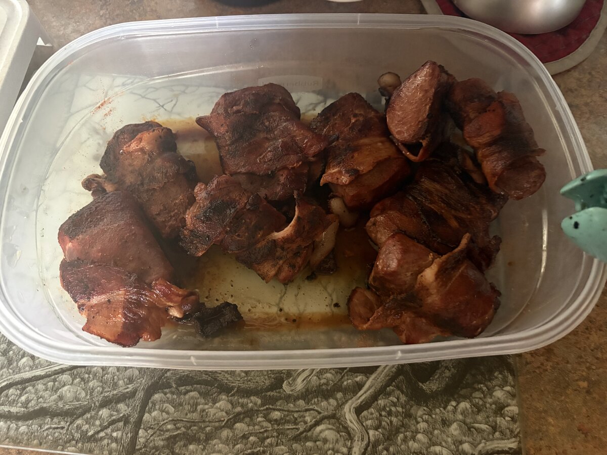 Busy day cooking today. First up was bacon wrapped smoked venison backstrap. Next up was beef tongue. First time cooking it. Boiled it until tender and then sliced it and pan fried it in tallow. Wow, this was tender and delicious. Last was some beef cheek meat. Slow cooked in the crockpot with a little beef broth. Extremely tender and fatty. 😋