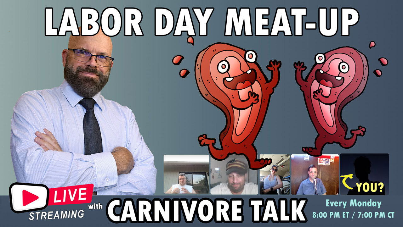 Join the Carnivore Talk team and fellow guests online every Monday to discuss your carnivore success stories, struggles, and carnivore diet Q&A. Feel free to join us onscreen with your own camera and microphone (and restream is enabled). HERE'S HOW TO JOIN US ONSCREEN AS A GUEST... https://carnivoretalk.com/events/ LET'S DO A VIDEO TOGETHER! Have YOU had success with a meat-based keto, ketovore, carnivore, carnivore-centric, or animal-based diet? Let's do a video together! Contact me using